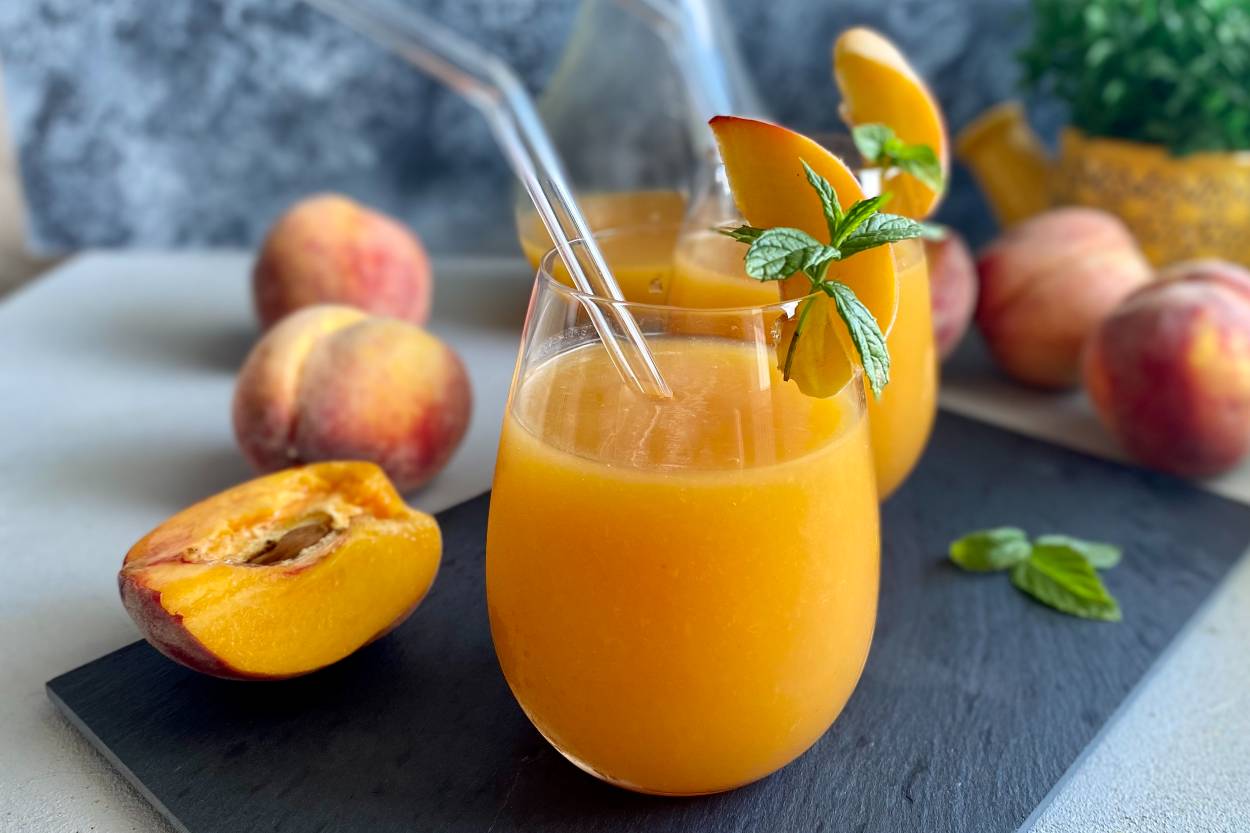 Yoğun şeftali aromalı meyve suyu.