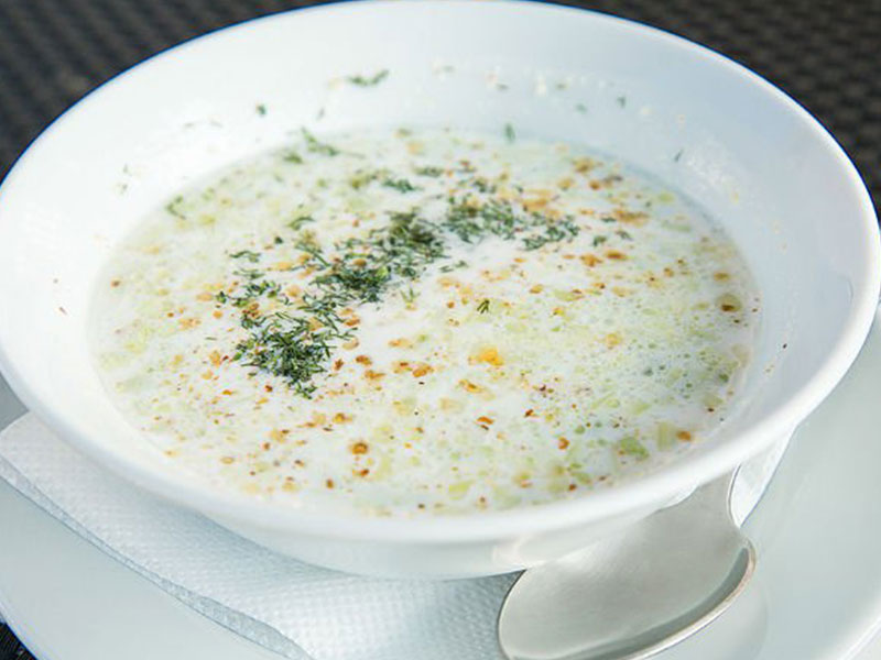 Yoğurt, buğday, nohut ve taze nane ile hazırlanan, soğuk ve ferahlatıcı bir çorba.