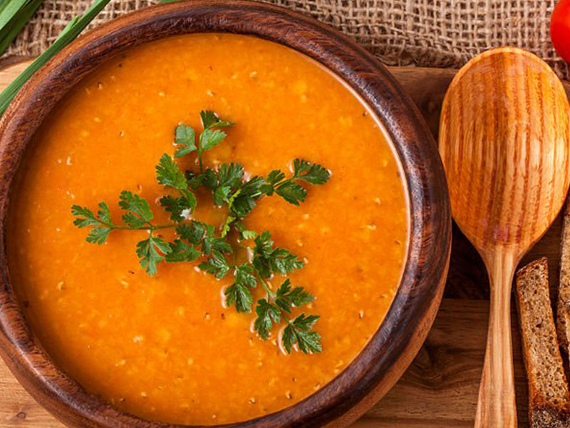 Kırmızı mercimek, soğan, havuç ve patatesin püre haline getirilip baharatlarla lezzetlendirildiği klasik bir çorba.