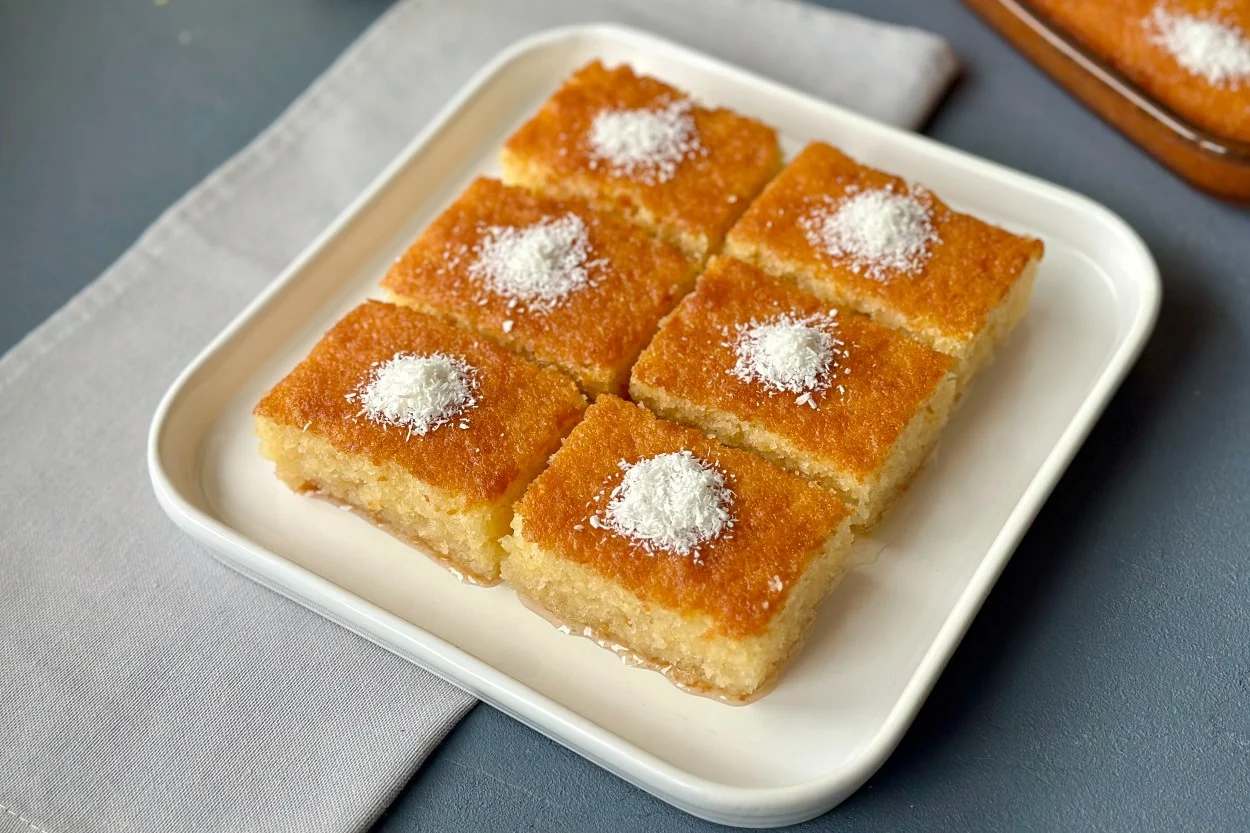 İrmik ve unla yapılan, şerbetle tatlandırılmış yumuşak bir tatlı.
